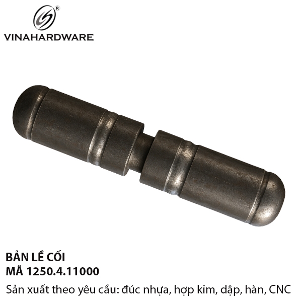 Bản lề được tiện từ thép láp đặc, độ chính xác cao, đảm bảo khả năng chịu tải lớn và vận hành ổn định. Phần thân gồm hai chi tiết trụ: một đầu trục đực và một đầu ống cái, liên kết với nhau qua trục xoay thép trung tâm. Thiết kế đầu bo tròn giúp hạn chế góc nhọn, tăng độ an toàn và phù hợp cho cả các công trình dân dụng lẫn công nghiệp.
