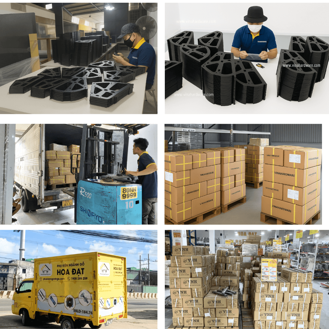 | 8 | Đóng gói thành phẩm | Bọc PE, thùng carton, tem mã | Đủ phụ kiện, chống xước khi vận chuyển |