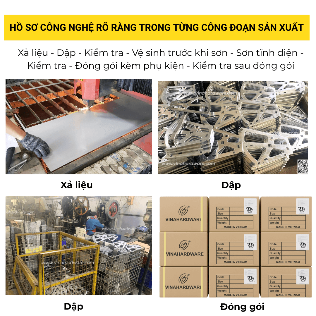 Sản xuất và kiểm định trực tiếp tại nhà máy Vinahardware Việt Nam.