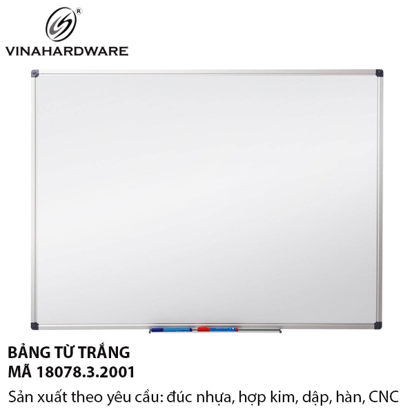 Bảng từ trắng Vinahardware 18078.3.2001 được thiết kế chuyên dụng cho phòng học, văn phòng, phòng họp, trung tâm đào tạo với bề mặt thép từ tính phủ sơn nano cao cấp giúp viết êm, dễ xóa, không để lại vết mờ.