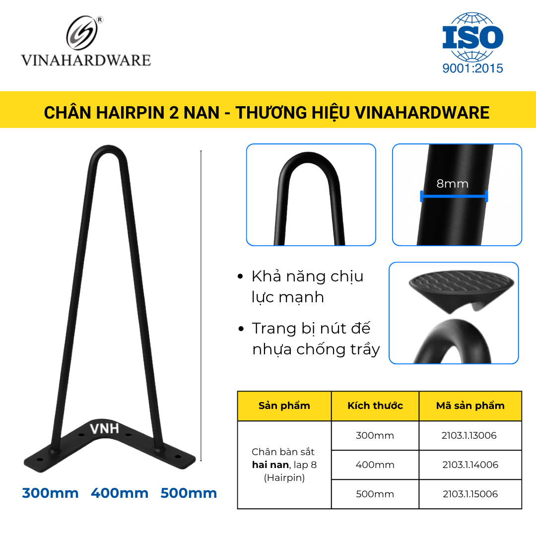 Chân bàn Hairpin 400mm Vinahardware trên Alibaba (click tại đây)