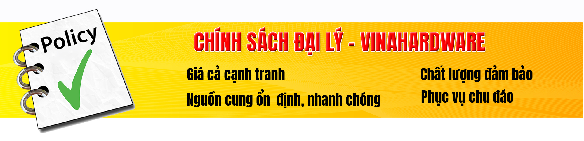Vinahardware luôn mong muốn là đối tác cung ứng lâu dài đối với Quý đại lý với tiêu chí "Đặt trọn niềm tin - Nâng cao chất lượng”.