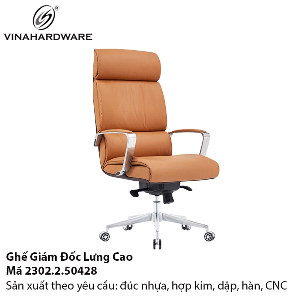 Ghế giám đốc 2302.2.50428 thiết kế hiện đại, sang trọng, kết hợp da công nghiệp (synthetic leather) cao cấp với khung và đế nhôm sáng bóng. Tựa lưng cao tích hợp tựa đầu, tay vịn cố định, cơ cấu đa chức năng (điều chỉnh chiều cao, ngả ghế) đáp ứng thoải mái cho lãnh đạo, phòng họp cao cấp, khách sạn và văn phòng điều hành.