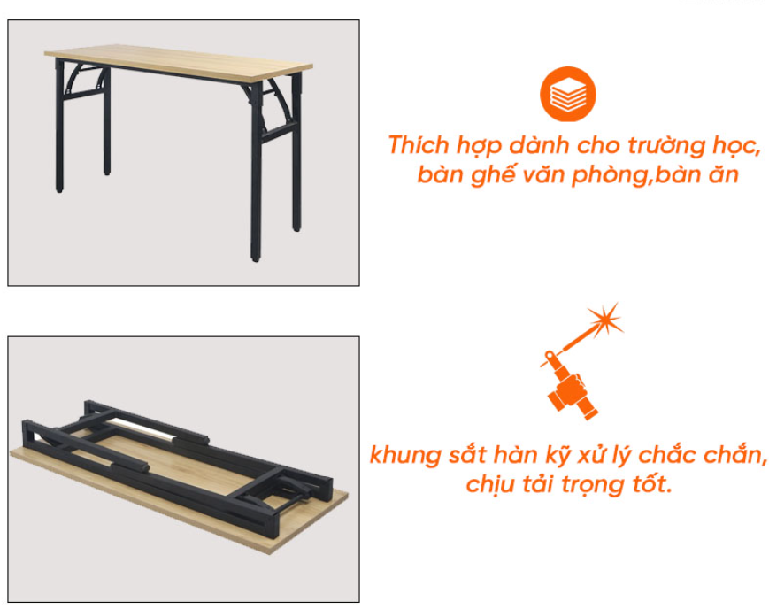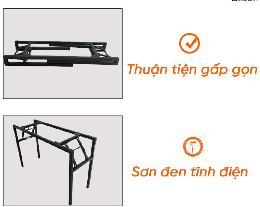 Khung chân bàn làm từ sắt hộp sơn phun 3 lớp chống hao mòn han gỉ đem đến sự chắc chắn cho sản phẩm mà lại có tính bền cơ học vô cùng lớn.