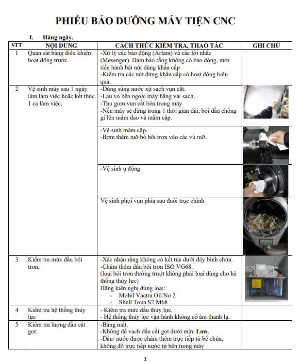 II. QUY TRÌNH BẢO DƯỠNG MÁY TIỆN MODEL TC25IIx500