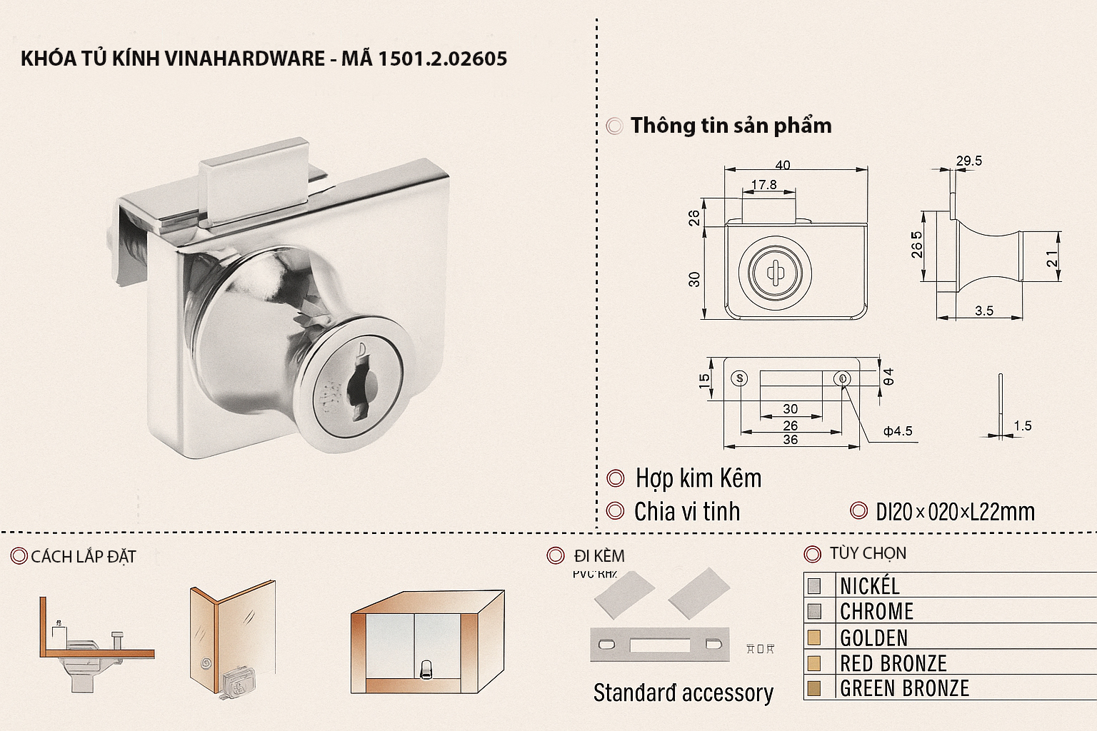 Khóa Kính – Mã 1501.2.02605 – Vinahardware
