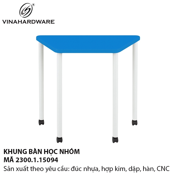 Khung bàn học nhóm mã 2300.1.15094 được thiết kế hiện đại, chắc chắn, phù hợp cho lớp học, thư viện và các trung tâm đào tạo. Khung sử dụng chân sắt ống Ø42mm kết hợp hệ ngàm âm dương 20x40mm giúp lắp ráp, tháo rời linh hoạt. Mặt bàn có thể tùy chọn chất liệu ván MDF, ván ép, gỗ cao su hoặc phủ melamine theo yêu cầu dự án.