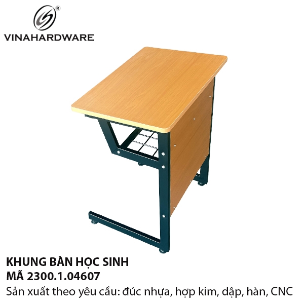 Khung bàn học sinh mã 2300.1.04607 là giải pháp bàn lớp bền bỉ, dễ lắp ráp và dễ bảo trì cho trường học, trung tâm đào tạo, mầm non và các dự án giáo dục. Khung làm bằng sắt hộp 20×40 mm gia cường, sơn tĩnh điện chống gỉ; đi kèm ngăn chứa sách (kiểu giỏ lưới/giá lưới) tiện dụng dưới mặt bàn. Mặt bàn có thể sản xuất bằng MDF phủ melamin / PVC / PU theo yêu cầu.