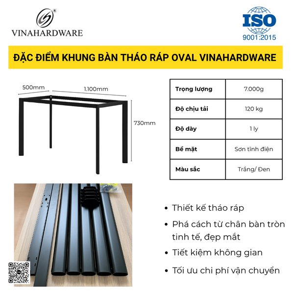 Khung Bàn Tháo Ráp Chân Oval Sơn Đen – Mã 2300.1.11846