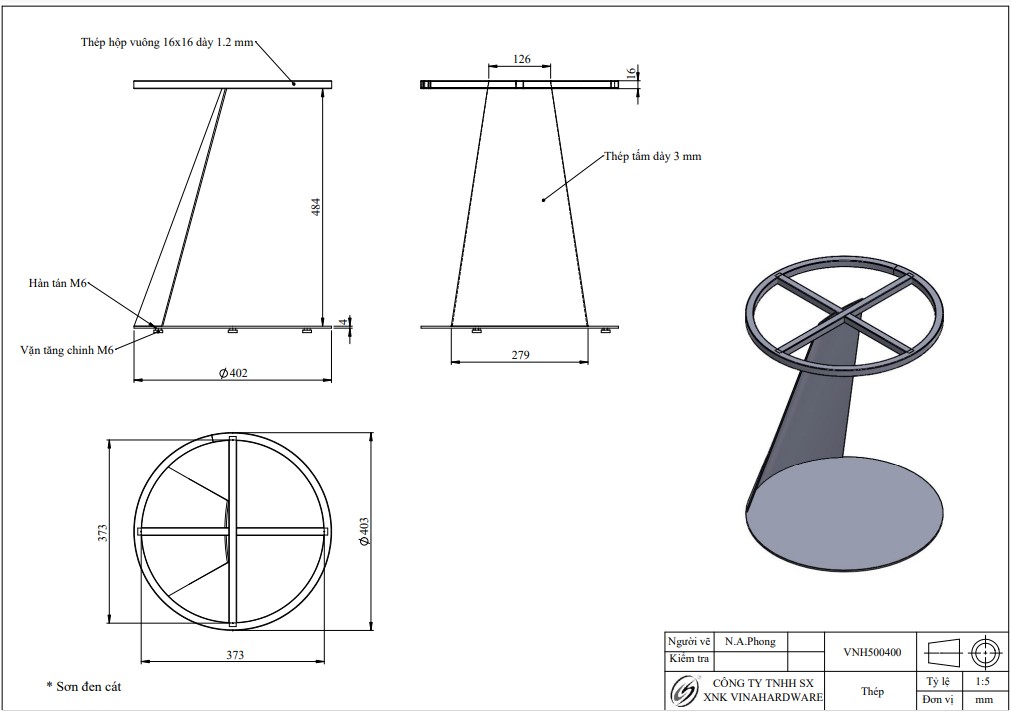 VINAHARDWARE (VNH) - GIA CÔNG KHUNG BÀN TRÒN CHÂN XÉO, SƠN ĐEN TĨNH ĐIỆN - VNH500400