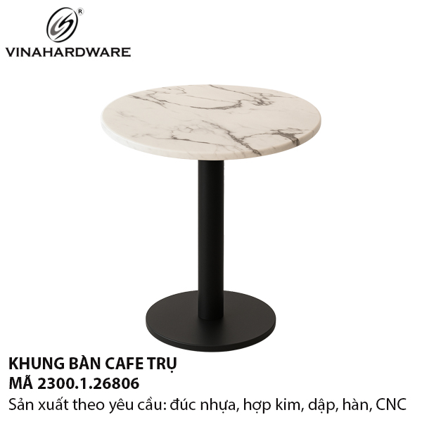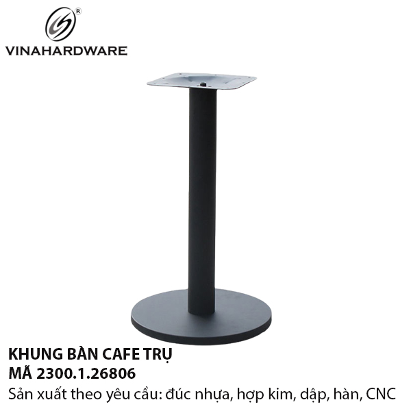 Khung bàn café chân trụ 2300.1.26806 được sản xuất theo tiêu chuẩn Vinahardware, mang đến sự chắc chắn, thẩm mỹ và độ bền cao. Với chân đế tròn dày và thân trụ thép chắc khỏe, sản phẩm thích hợp cho nhiều không gian như café, quán ăn, nhà hàng và khách sạn.