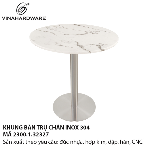 Khung bàn trụ inox 2300.1.32327 được thiết kế sang trọng và bền bỉ với inox 304 cao cấp. Chân trụ φ76mm chắc chắn, kết hợp đế tròn dày 5mm mang lại sự ổn định tuyệt đối. Sản phẩm phù hợp cho không gian quán café, nhà hàng, khách sạn và bàn ăn cao cấp.