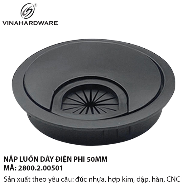 Nắp luồn dây điện Ø60mm – mã 2800.2.00501 được sản xuất từ hợp kim đúc, xử lý bề mặt điện di màu đen, mang phong cách hiện đại và sang trọng. Sản phẩm được thiết kế phù hợp lỗ khoét mặt bàn phi 50mm, chuyên dùng cho bàn làm việc văn phòng cao cấp và nội thất dự án.