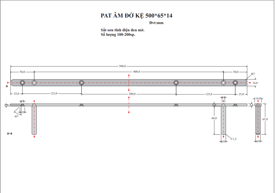 Khoảng cách lỗ, vị trí lỗ, bán kính bo R7
