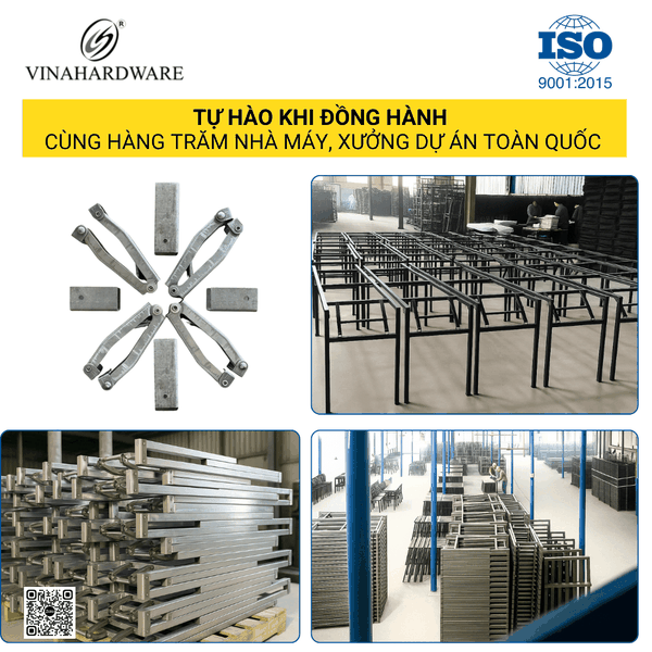 VINAHARDWARE TRỰC TIẾP GIA CÔNG KHUNG BÀN GHẾ , PAT SẮT, RAY TRƯỢT, BẢN LỀ, PHỤ KIỆN THÔNG MINH,... THAM GIA CÁC DỰ ÁN NHÀ Ở XÃ HỘI, NHÀ LẮP GHÉP. SẢN PHẨM PHÂN PHỐI KHÔNG CHỈ ĐẾN KHÁCH HÀNG TRONG NƯỚC, MÀ CÒN ĐƯỢC THẾ GIỚI ĐÓN NHẬN NHƯ ÚC, NEW NEWZELAND, MỸ,...