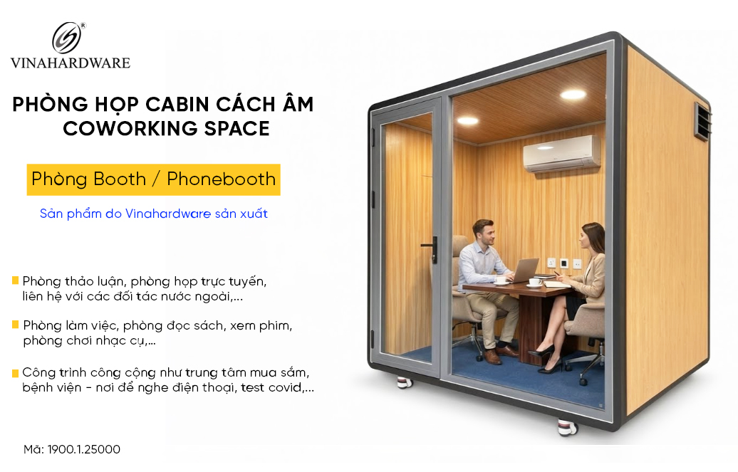 Phòng họp tiêu âm Vinahardware 1900.1.13330 là buồng làm việc cách âm cá nhân được thiết kế dành cho văn phòng hiện đại, khu vực họp trực tuyến hoặc làm việc riêng tư.