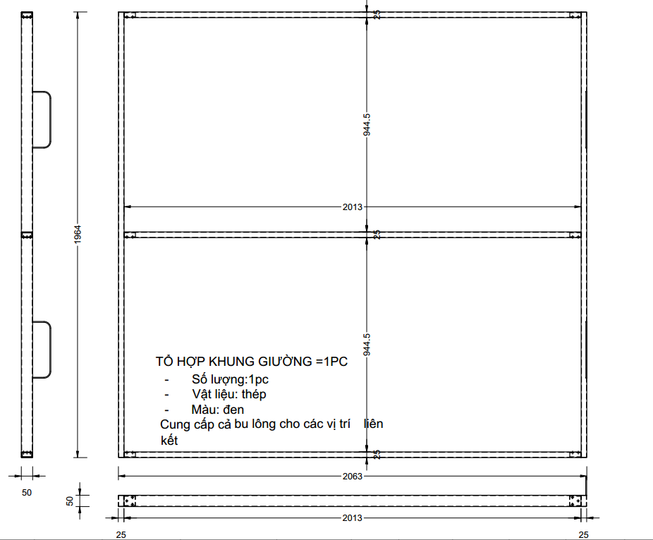- Tên sản phẩm: Tổ hợp khung giường thép