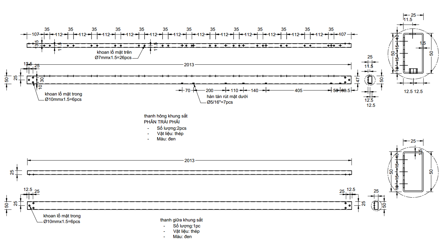 - Vật liệu chính: Thép