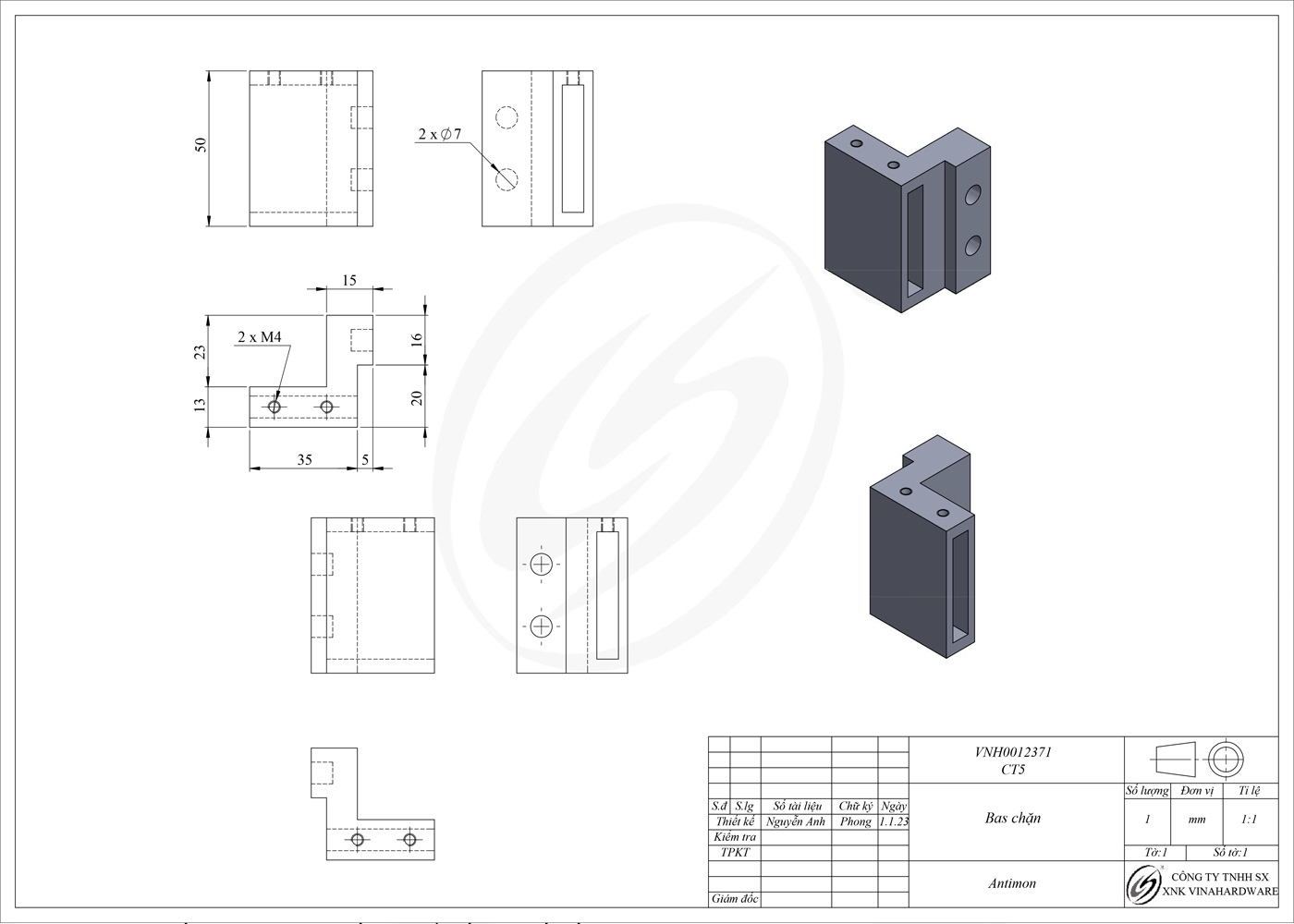 Phụ kiện: Bas chặn atimon giả cổ, bulong thép mạ đen, tán lục giác, long đền, vít lục giác