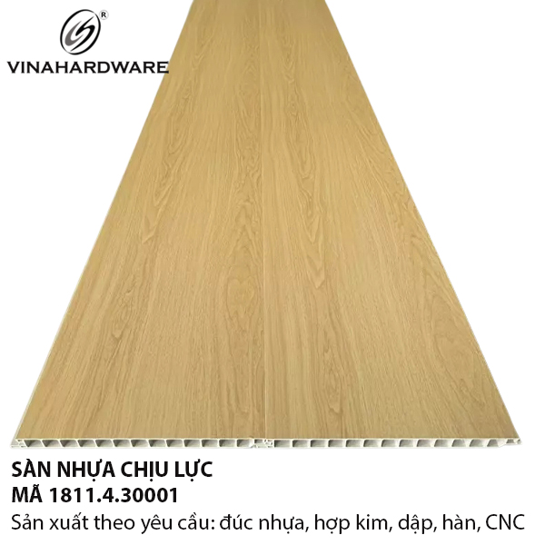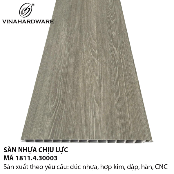 Tấm sàn nhựa chịu lực mã 1811.4.31001 là giải pháp thi công sàn hiện đại với cấu trúc rỗng tổ ong tăng cường khả năng chịu tải, đồng thời hạn chế võng sàn và chống thấm nước hiệu quả. Sản phẩm được thiết kế với bề mặt giả vân gỗ tinh tế, mang đến tính thẩm mỹ cao và dễ dàng vệ sinh.