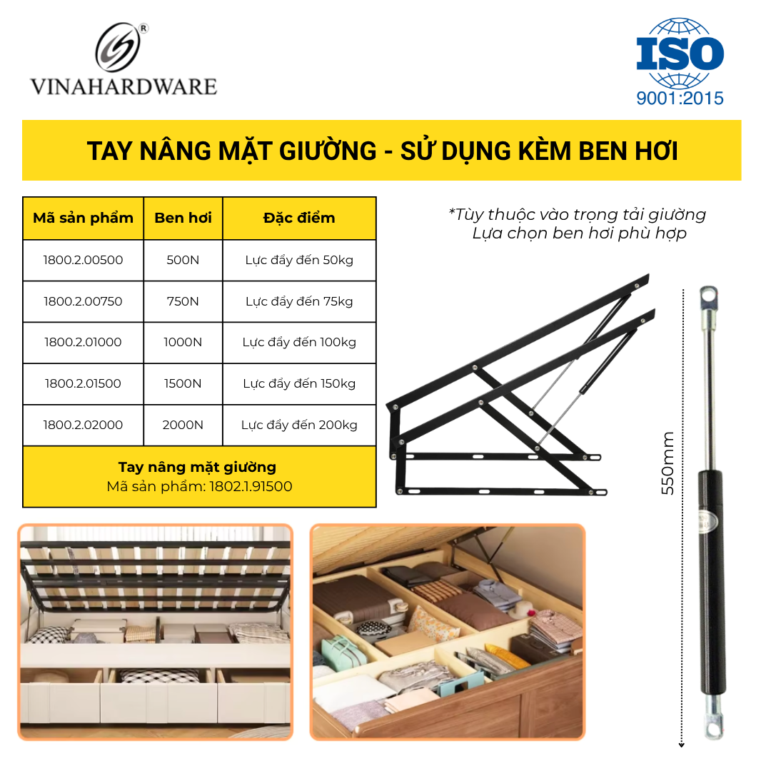 Loại sản phẩm: Phụ kiện nâng mặt giường (chưa bao gồm ben hơi – lựa chọn riêng theo lực nâng giường)