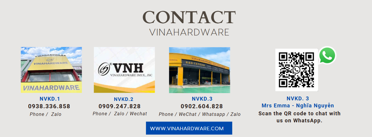 CÔNG TY CỔ PHẦN SẢN XUẤT XUẤT NHẬP KHẨU VINAHARDWARE 134, đường Lê Lợi, khu phố 3, Phường Bình Dương, TP Hồ Chí Minh, Việt Nam MST: 0311 741 674 |