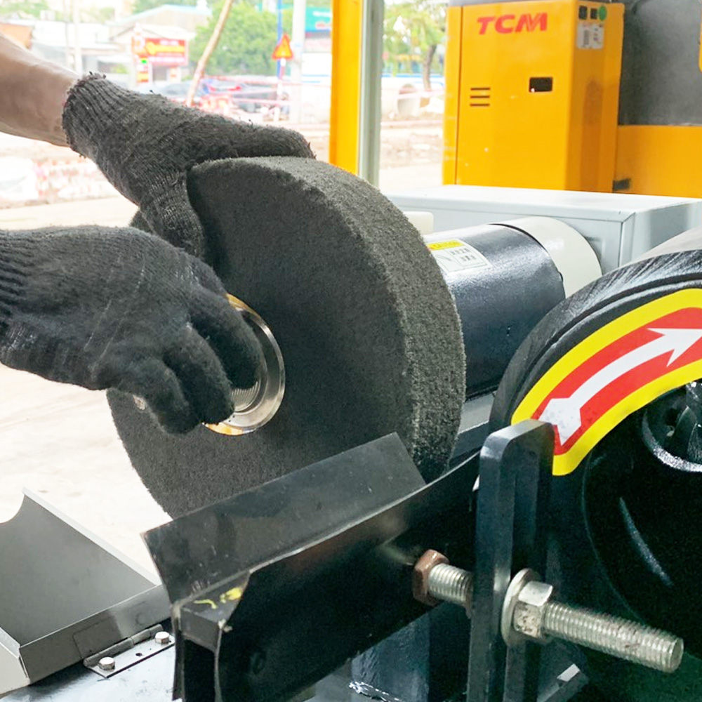- Tích hợp với nhiều loại vật liệu nhám: Máy có khả năng kết hợp với mọi loại vật liệu nhám vòng mài mòn có sẵn, để đánh bóng các loại kim loại như Inox, thép, đồng, nhôm, hợp kim thép cứng, và nhiều loại khác.